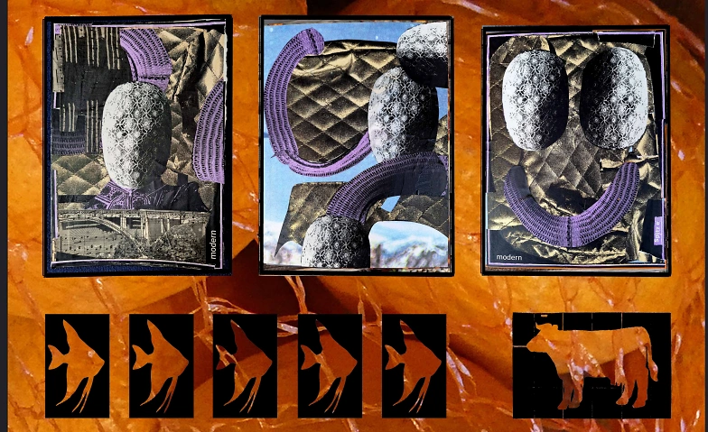 Mit Pinsel und Kleister collagiert Beat Gipp altes Papier auf nutzlose Buchdeckel und Landkarten. Roh und skuril knallen diese auf der orangen Fläche und schreien nach verspielter Einfachheit in dieser komplizierten Zeit.