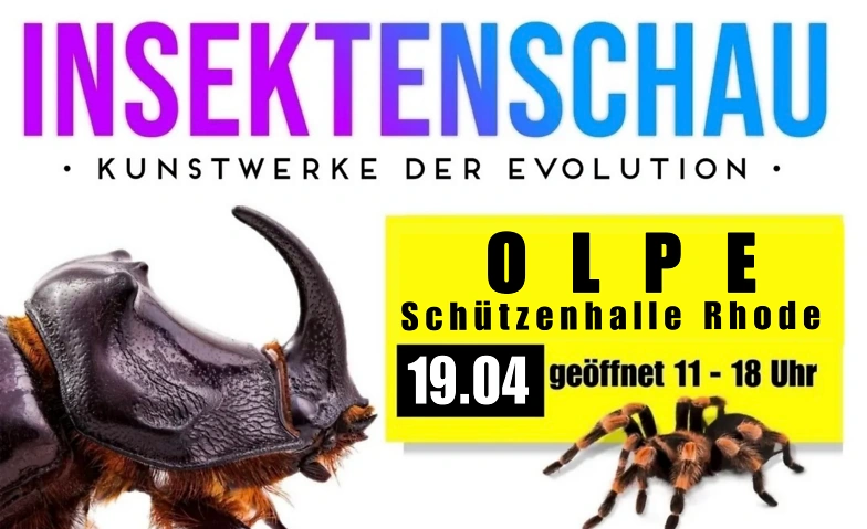 Am 19.04.2026 gastiert die Insektenschau - Kunstwerke der Evolution in der Schützenhalle Rhode.