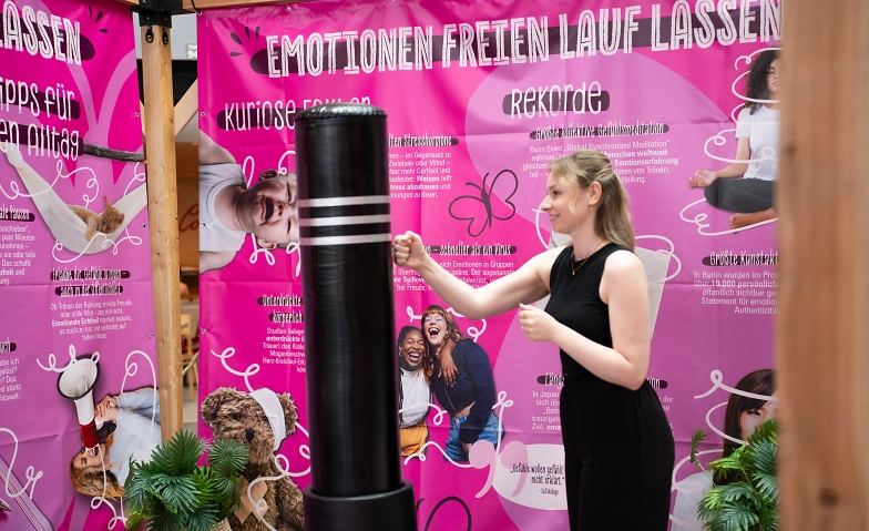 An der «Colour me»-Farbwand kann kreativ gemalt werden. Im Spiegelkabinett sorgt das eigene Spiegelbild für spontane Lachmomente. Beim überdimensionalen TicTacToe XXL stehen Spiel und Bewegung im Vordergrund. Ein besonderes Highlight ist der «Wut hier rein»-Boxsack, an dem Frust gezielt abgebaut werden kann. In der Schreikabine darf es dann auch einmal laut werden – ganz bewusst und mit einem Augenzwinkern.