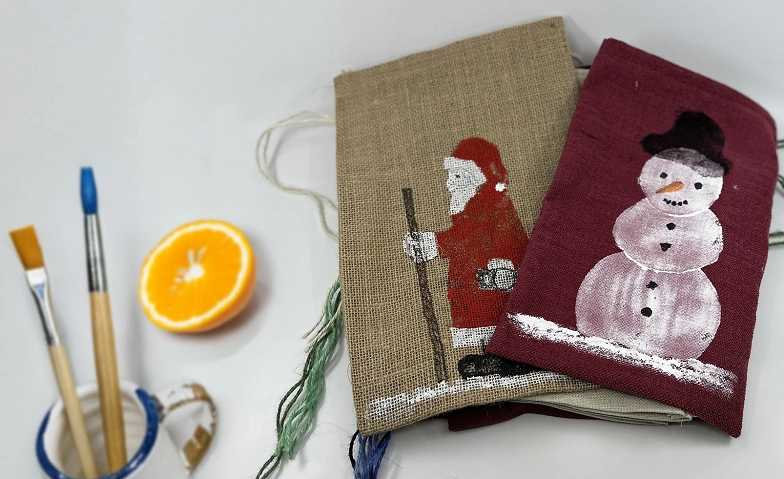 Mit einfacher Drucktechnik gestalten wir einen Chlaussack, in dem Esswaren vom Samichlaus oder Weihnachtsgeschenke Platz finden.