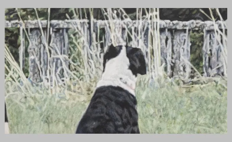 Die im Kabinett miteinander gezeigten Arbeiten öffnen den Blick durch die Augen der Künstlerin auf Menschen und Tiere, auf Beziehungen – dargestellt mit Motiven aus ihrem Leben und dem ihrer Nächsten, ihrem Umfeld. Eine neu entstandene Werkgruppe (2025/26) basiert auf einem Video, in dem die Künstlerin, im Gesicht geschminkt wie die Fellzeichnung ihres Hundes, mit diesem interagiert. Verschiedene Standbilder daraus hat sie als Gemälde ausgeführt. In der Ausstellung sind auch vereinzelt ältere Arbeiten zu sehen (2023/24).
