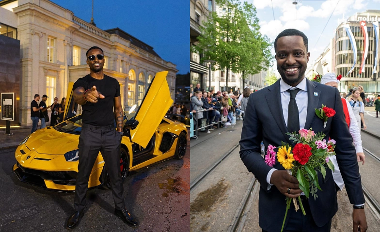 Credits: Vorbild oder Verkaufsmasche? Links ein KI-generiertes Bild von Charles Nguela, rechts das Original © Basil Stücheli und Conscious Influence Hub