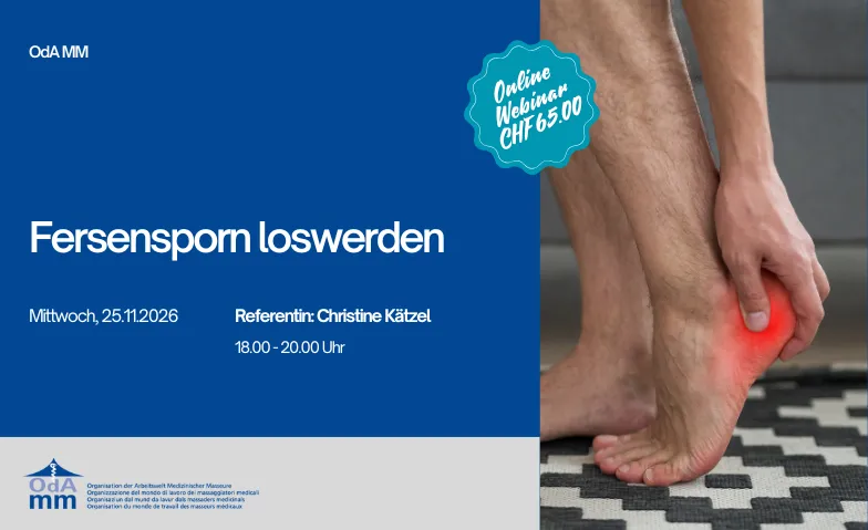 Dieses Webinar vermitteln fundiertes Wissen über die möglichen Schmerzgeneratoren und Ursachen. Ziel des Webinars ist es, den Teilnehmern Strategien an die Hand zu geben, um Fersenporn-Beschwerden in der Praxis nachhaltig zu lindern und die Fussgesundheit zu verbessern.