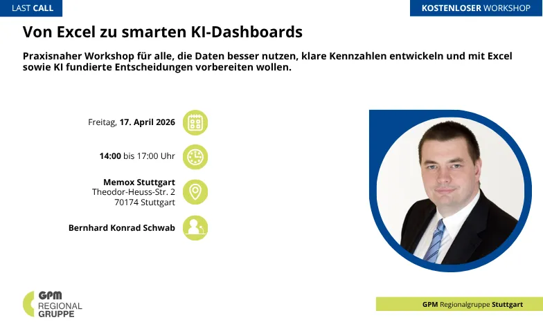 Von Excel zu smarten KI-Dashboards - KPIs, KI und Transforma Memox - Stuttgart - Regionalgruppe Stuttgart der GPM, Theodor-Heuss-Straße 2, 70174 Stuttgart Tickets