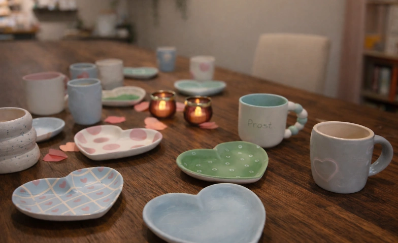 Wir zaubern zusammen wunderschön bemalte Unikate aus Rohkeramik! Wählt aus unseren verschiedenen Keramikrohlingen (die Preise varieren je nach Keramikrohling) im Workshoppreis enthalten ist bereits eine Tasse* Farben und Zubehör! Lasst euch verzaubern und mitnehmen in eine Welt ausserhalb des Alltagstress´s, in unserem wunderschönen Gewölbe könnt ihr in entspannter Atmosphäre kreativ werden und den Alltag ein Stück weit vergessen. Und das allerbeste daran ihr müsst überhaupt keine Talente oder Vorkenntnisse mitbringen, einfach nur Freude an Kreativität und vor allem ganz viel gute Laune und Spass, der Rest kommt von ganz allein. *gerne können am WorkshopAbend auch noch zusätzliche Keramiken ausgewählt und bemalt werden, die Preise varieren je nach ausgewählter Keramik und können dann vor Ort noch dazugebucht werden.