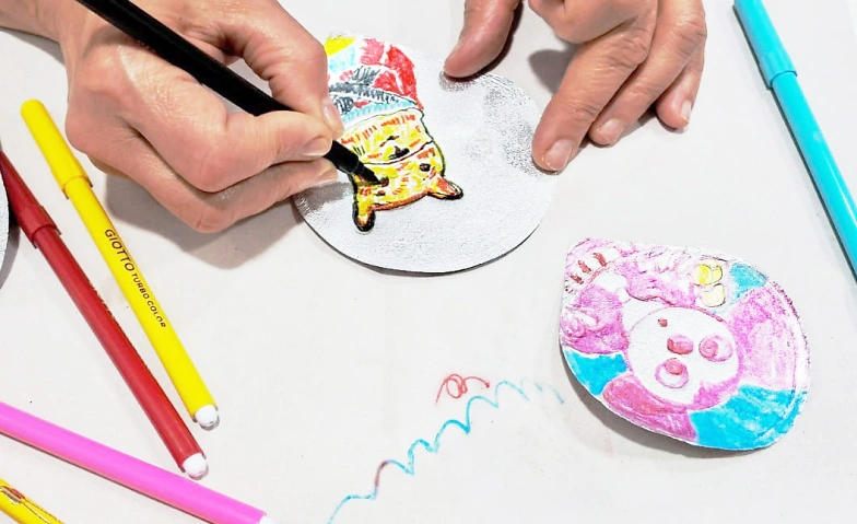 Druck mal anders: Mithilfe von Joghurtdeckeln entstehen überraschende Gestaltungen auf Papier und Stoff! Es wird mit Stiften, Markern und Aquarellfarben gearbeitet.