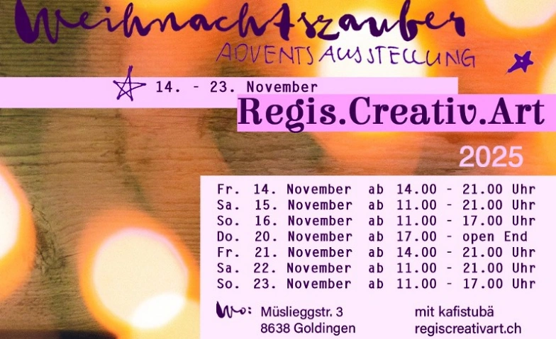 Weihnachtszauber - Adventsausstellung Regis.Creativ.Art, Müslieggstrasse 3, 8638 Goldingen Tickets