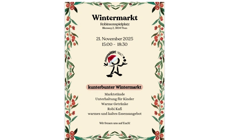 Robinsonspielplatz Thun, Illienweg 2, Thun, CHKategorie: Märkte / Weihnachtsmarkt