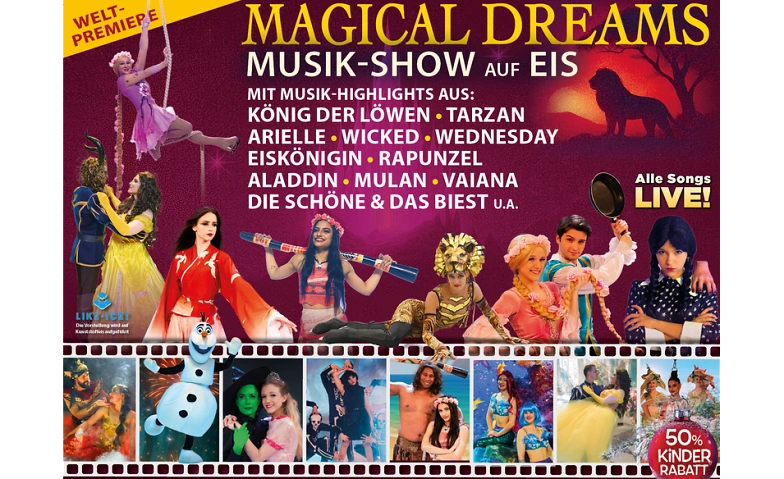 Nach drei Jahren erfolgreicher Tourneen der gefeierten Musikshow auf Eis „Eiskönigin 1 & 2“ – mit über einer Million Zuschauern in mehr als 20 Ländern (darunter Deutschland, Dänemark, Estland, Frankreich, Griechenland, Israel, Italien, Liechtenstein, Litauen, Monaco, Norwegen, Österreich, Polen, Schweiz, Serbien, Slowakei, Spanien, Tschechien, Ungarn und Zypern) sowie jährlich in rund 180 Städten, präsentieren die Erfolgsproduzenten und Regisseurin Marina Beniashvili ihr neuestes Meisterwerk auf Eis: Magical Dreams.