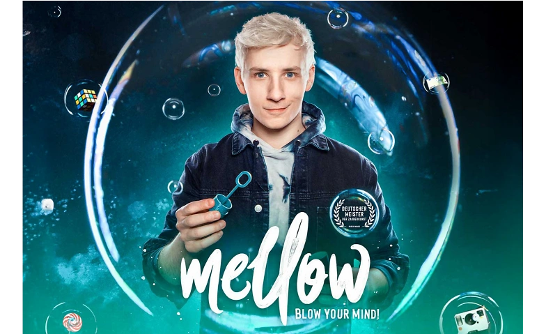 Wenn Du Dir die Augen reibst und Deine Gehirnzellen durchgepustet werden: Dann ist es Mellow! Der sympathische Magier im Kapuzenpulli ist Deutscher Meister der Zauberkunst (Parlor-Magic) und stellt mit kreativen Illusionen und humorvollem Storytelling Deine Welt auf den Kopf!