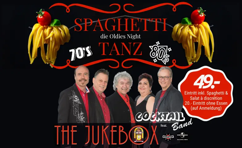 Ein gemütlicher Abend mit Spaghetti à discrétion, verschiedenen leckeren Saucen inkl. Salat und den besten Hits der 70er und 80er.