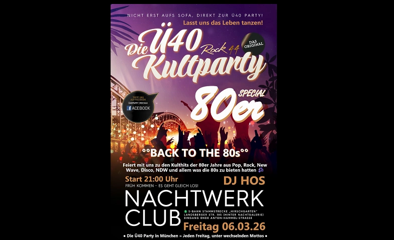 ► Location: Ü40-Party von Rock44 im Nachtwerk Club München, Landsberger Str. 185, 80687 München 📌