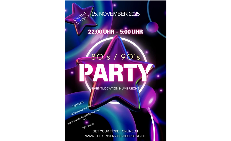80/90ger Party Eventlocation Nümbrecht, Hauptstraße 60, 51588 Nümbrecht Tickets