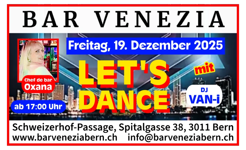 Bar Venezia, Schweizerhof-Passage, Spitalgasse 38, Bern, CHVeranstalter:in