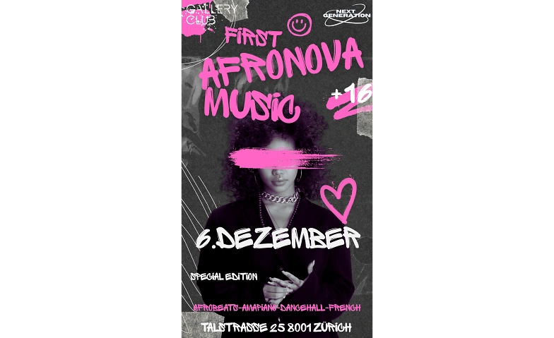 AM 6.DEZEMBER AM SAMSTAG UM 23.00UHR PRÄSENTIERT NEXT GENERATION hat ein NEUES Label aufgebaut namens AFRONOVA. AFRONOVA ist eine afrikanische Party mit den besten vibez. Kommt vorbei es wird KRANK und bringt eure gute Laune mit.