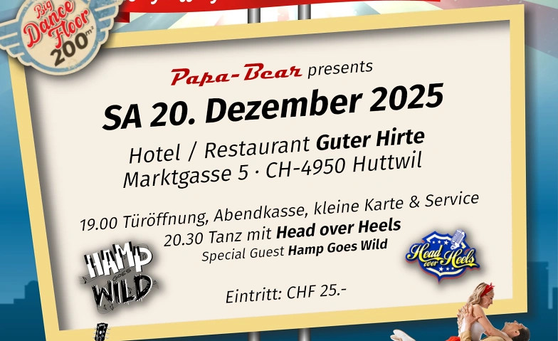 Unsere Live Band Head Over Heels & Special Guest Hamp Goes Wild entführen Dich in die goldene Ära der 50er Jahre mit Hits von Elvis Presley, Chuck Berry, Bill Haley, Fats Domino, Jerry Lee Lewis und vielen mehr.