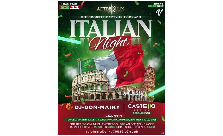 ### 🇮🇹 **ITALIAN NIGHT – Die größte italienische Party in Lörrach!** 🎉
