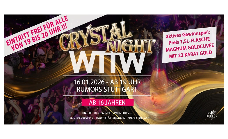 🥇 WTTW@RUMORS ist ja bekannt für seine abwechslungsreichen und ausgefallenen Motto-Partys. Die Crystal Night ist definitiv eine davon, die auch nur einmal im Jahr stattfindet.
