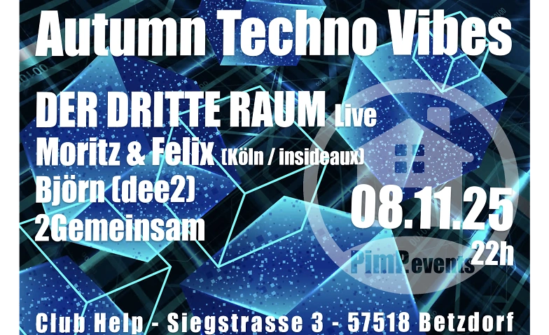 Die Indoor-Saison beginnen wir am 08.11.2025 in Betzdorf im -Club Help- mit Leckerbissen wie "DER DRITTE RAUM -live-", 2Gemeinsam, Moritz Piske und Björn aus dem dee2 in Siegen.