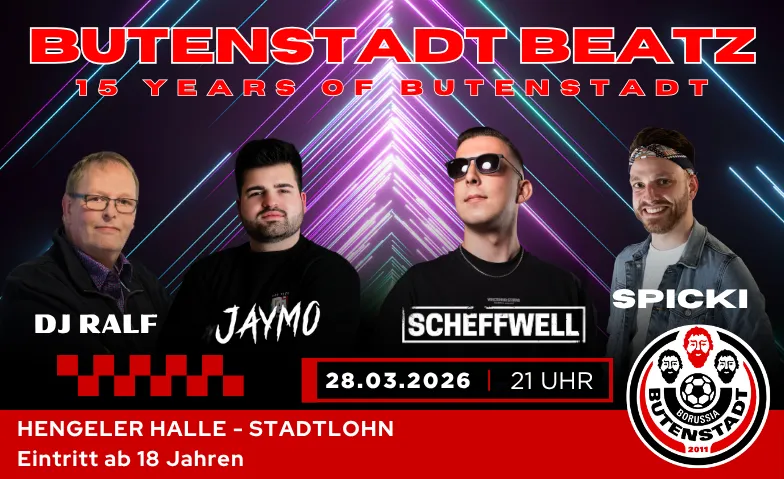 Butenstadt Beatz - 15 Years of Borussia Butenstadt Hengeler Halle, Hengeler 58, 48703 Stadtlohn Tickets