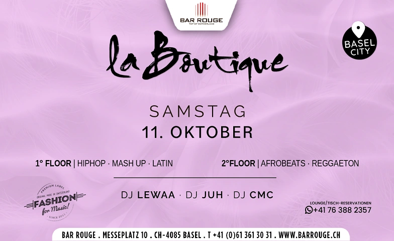 LA BOUTIQUE - SA. 11.OKT. - BAR ROUGE CLUB Bar Rouge Club, Messeplatz 10, 4058 Basel Tickets