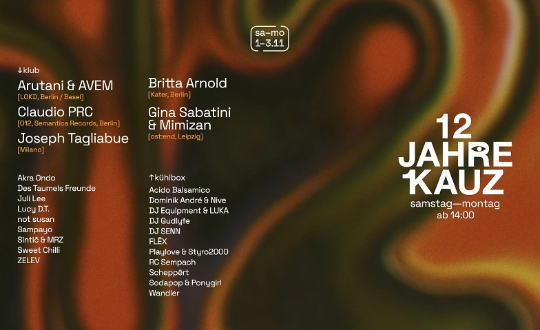 12 Jahre Kauz // Samstag - Montag Kauz, Ausstellungsstrasse 21, 8005 Zürich Tickets