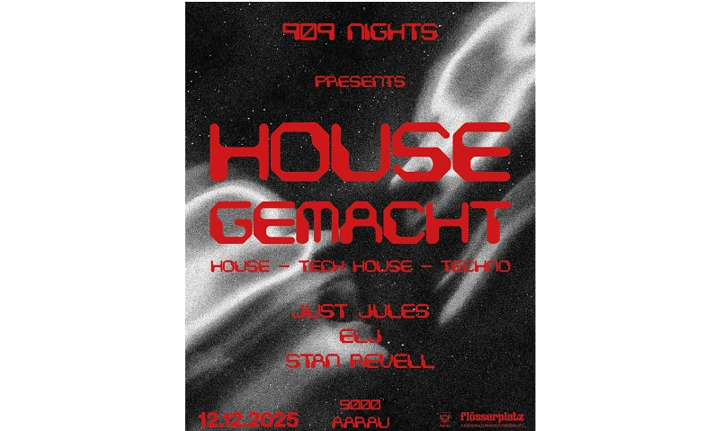 Am 12. Dezember verwandelt sich der Flösserplatz in Aarau in ein Zentrum für alle Liebhaberinnen und Liebhaber von House Music. 909 Nights feiert an diesem Abend die Premiere von HOUSE GEMACHT – eine neue Eventreihe, die ganz dem treibenden Sound des klassischen House und Techno gewidmet ist.