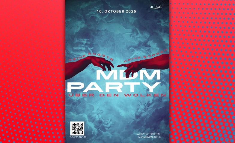 Tragt euch für den 10. Oktober 2025 die MdM Party rot im Kalender ein. Diese Party ist die größte in Witten und nicht nur von Student*innen für Student*innen sondern auch für alle jungen Wittener, Azubis und Abiturienten. Jedes Frühjahr- und Herbstsemester legen sich die Hochschüler*innen des Unikat e.V. voll ins Zeug, um mit dieser fette Party für einen guten Start in das Studienhalbjahr zu sorgen. Früher war dieses Event eine geschlossene Veranstaltung der UWH, aber seit letztem Jahr kannst du auch mit dabei sein! Die MdM öffnet ab 22:00 bis 06:00 Uhr die Tore für ein krassen Semester-Kick-Off. Das Motto der Party lautet "Über den Wolken - Keine Ängste, Keine Sorgen".