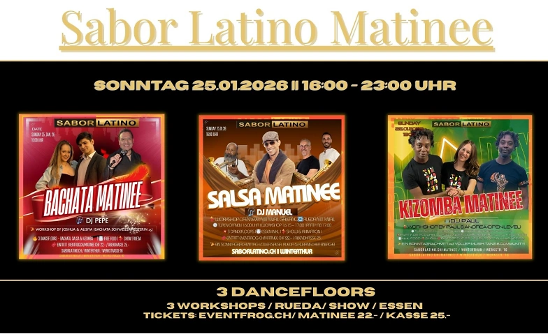 Hast du Lust auf eine Latin-Party, die dich zum Schwitzen bringt und dich mit purer Lebensfreude erfüllt? Dann komm zur Sabor Latino Matinee! Dich erwarten drei Dancefloors, die alles bieten, was das Tänzerherz höher schlagen lässt – Salsa, Bachata und Kizomba, gespielt von unseren beliebtesten DJs.