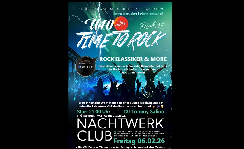 ► Location: Ü40-Party von Rock44 im Nachtwerk Club München, Landsberger Str. 185, 80687 München 📌