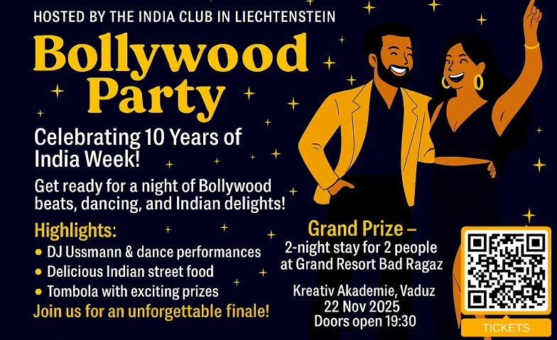 India Week 2025 - Bollywood Party Kreativ Akademie, Schaanerstrasse 27, 9490 Vaduz Tickets