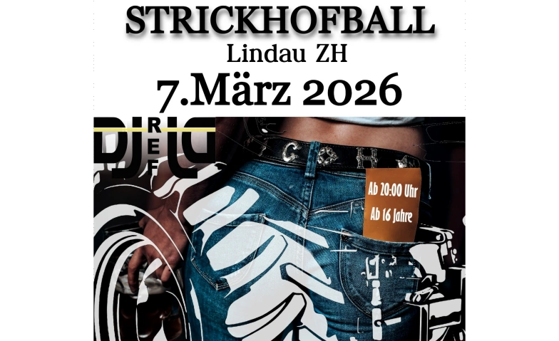 Strickhofball 2026 - endlich steigt sie wieder, die traditionsreiche Party an der landwirtschaftlichen Berufsschule Strickhof in Lindau! Für Stimmung sorgt dieses Jahr DJ Ref JD, die reichhaltig ausgestattete Bar beugt Dehydrierung vor, und in der gemütlichen Kafi-Stube kann man sich bei stimmiger Musik ums leibliche Wohl kümmern.