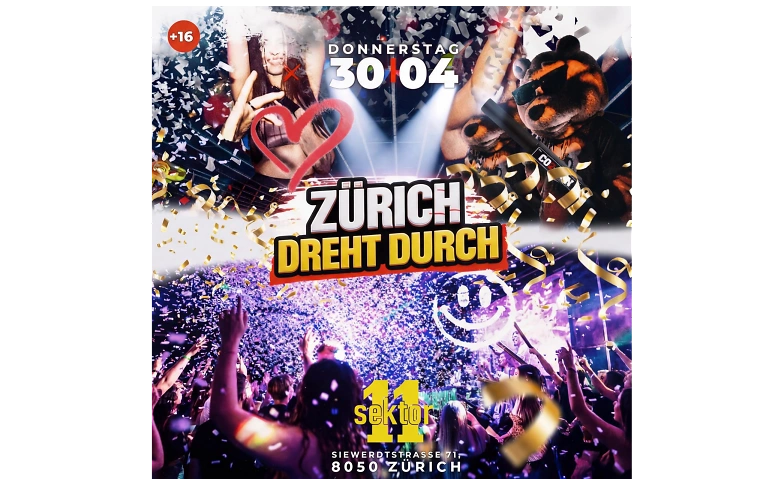 Veranstalter:in von ZÜRICH DREHT DURCH  SEKTOR11, ZÜRICH (+16 / Ü16)