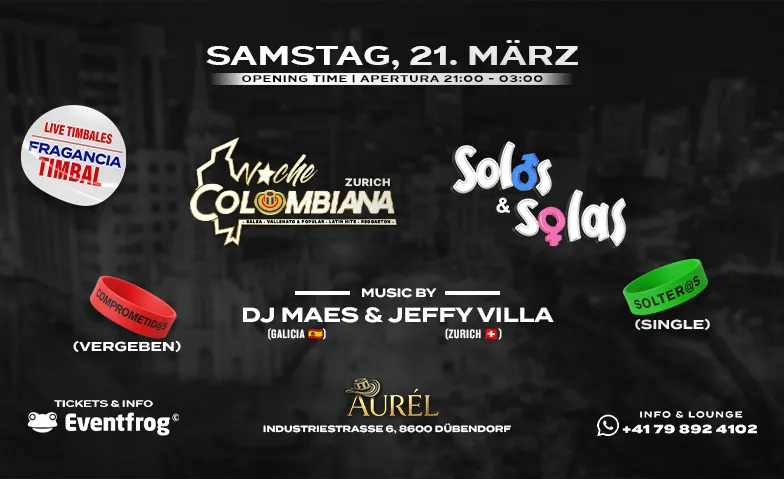 NOCHE COLOMBIANA ZURICH (Solos y Solas) Industriestrasse 6, Industriestrasse 6, 8600 Dübendorf Tickets