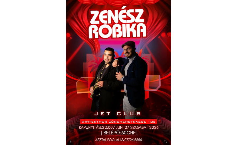 Mindenkit várunk szeretettel egy fergeteges élő zenés magyar buliba ahol Zenész Robika és zenekara biztosítja a jó hangulatot 🎷🎹A jó kedv és buli garantált🥂Belépő:30chf.Helyszin:Jet Club Winterthur Zürcherstrasse 106.