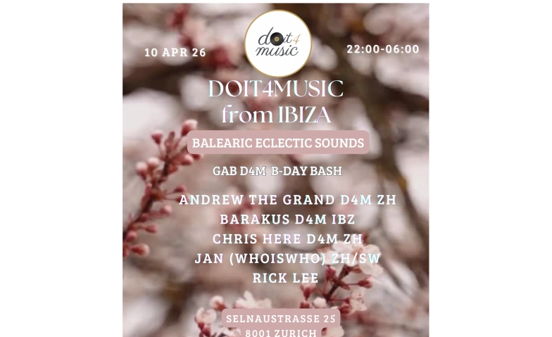 BALEARIC ECLECTIC SOUNDS D4M B-Day Bash DOIT4MUSIC IBIZA IN ZÜRICH, Selnaustrasse 25, 8001 Zürich Tickets
