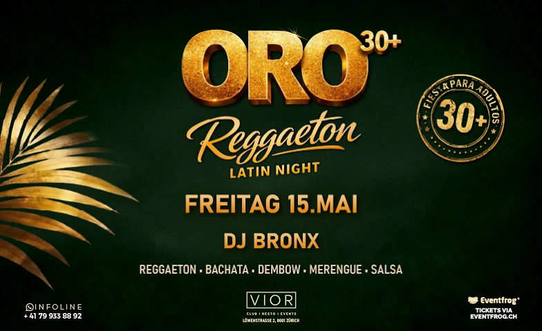 Genau dafür steht ORO – 30+ Reggaeton Latin Night am Freitag,15 Mai im VIOR Club Zürich. Diese Nacht richtet sich an alle, die Latin Beats lieben, das Tanzen nie aufgegeben haben und Wert auf ein erwachsenes, angenehmes Publikum legen. Hier trifft Energie auf Stil und Leidenschaft auf Qualität.