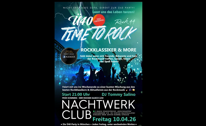 ► Location: Ü40-Party von Rock44 im Nachtwerk Club München, Landsberger Str. 185, 80687 München 📌