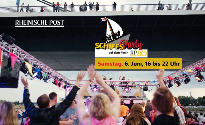Bist du bereit für die ultimative Schiffsparty auf dem Rhein? Am 6. Juni 2026 lädt dich die Rheinische Post zur großen Sommerparty nach Düsseldorf ein. Wir feiern unser 80-jähriges Jubiläum auf dem modernsten Eventschiff der KD-Flotte, der MS RheinGalaxie. Erlebe den Sonnenuntergang über der Düsseldorfer Skyline und tanz mit uns unter freiem Himmel.