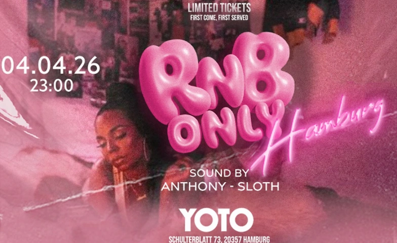 RNB ONLY kehrt zurück nach Hamburg – und bringt den Sound ins YOTO, der seit jeher für Vibes, Gefühl und diese ganz besondere Form von Nacht steht. Für eine Ausgabe, die ganz im Zeichen von smoothen Grooves, großen Hooks und purem R&B-Glanz steht, zieht das Kölner Format erstmals in den Soulkeller am Schulterblatt.