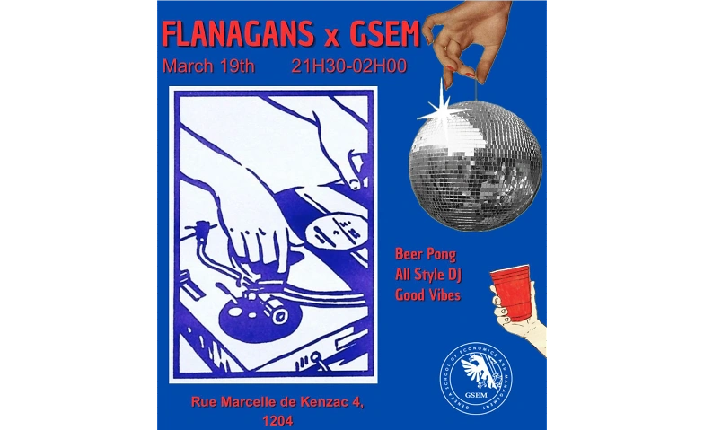 Envie de décompresser après les cours ? Le GSEM Comité vous donne rendez-vous ce jeudi 19 mars au Flanagans (Rue Marcelle de Kenzac 4, 1204) pour une grosse soirée étudiante 🔥