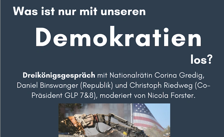 Dreikönigsgespräch mit Nationalrätin Corina Gredig (Fraktionspräsidentin), dem Journalisten Daniel Binswanger (Co-Chefredaktor Republik) und dem Gräzisten Christoph Riedweg (Co-Präsident GLP 7&8); Moderation: Nicola Forster (Team Ensemble).