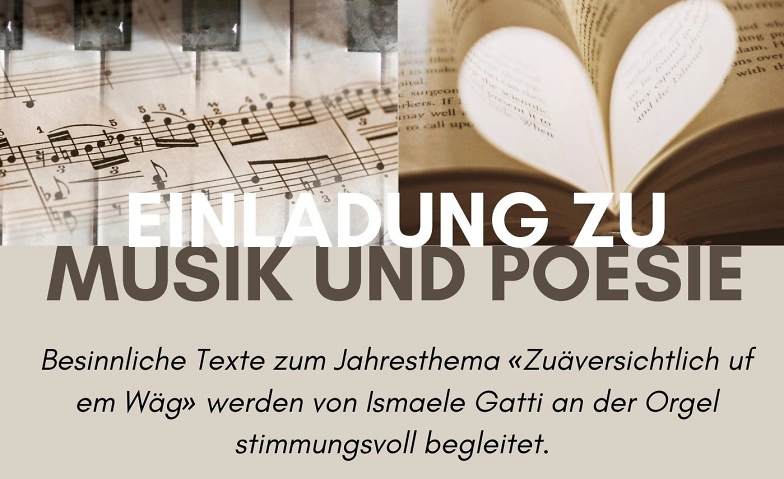 Am Dienstag, 10. März 2026 um 19.30 Uhr laden wir zu einem speziellen Abend in die Kirche ein. Besinnliche Texte zu unserem Jahresthema: «Zuäversichtlich uf em Wäg» werden von Ismaele Gatti an der Orgel mit passenden Melodien begleiten. Ein Abend zum Innehalten, Beten, Musik geniessen und Hoffnung tanken. Nehmen Sie sich bewusst diese Zeit und Setzen Sie ein Zeichen für die Zuversicht und Hoffnung.