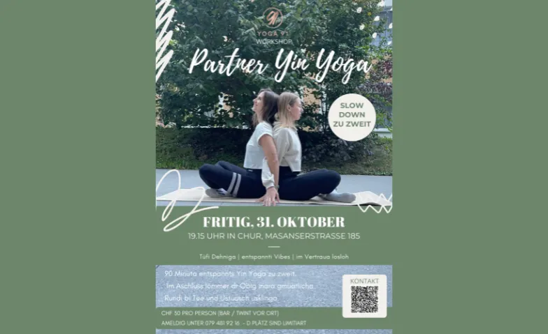 Freitagabend entspannt loslassen – Partner Yin Yoga Yin Yoga lädt dazu ein, bewusst zur Ruhe zu kommen und den Alltag für einen Moment hinter sich zu lassen. Die sanften, länger gehaltenen Positionen fördern Beweglichkeit, lösen Spannungen und stärken die innere Balance. Studien zeigen, dass Yin Yoga die Resilienz unterstützt, Stress reduziert und erholsamen Schlaf fördern kann. Bei diesem speziellen Event übt ihr zu zweit – komm mit Partner/in, Freund/in oder einem Herzensmenschen, dem das auch gut tun würde! Einige Übungen führt ihr gemeinsam aus und unterstützt euch gegenseitig beim Loslassen. Ein wohltuender Ausgleich für Körper und Geist – und eine schöne Möglichkeit, den Freitagabend in guter Gesellschaft ausklingen zu lassen.