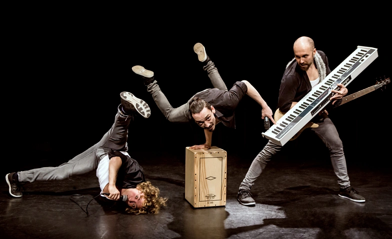 Die drei internationalen Multitalente spielen zudem all ihre Fähigkeiten aus und nutzen ihren spitzbübischen Spieltrieb. Warum nicht den Schwung des Saltos nutzen, um dabei das Schlagzeug zu spielen? Warum Musik aus der Konserve, wenn man seine Artistik musikalisch und gesanglich auch selbst live begleiten kann?
