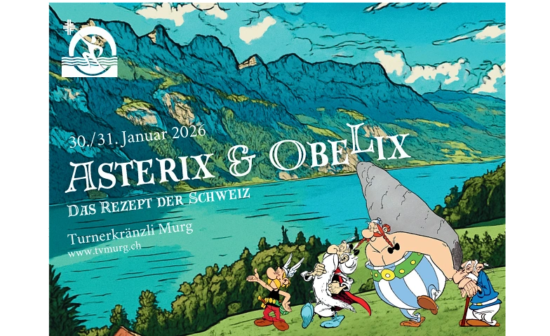 Der Turnverein Murg lädt ein zum Kränzli 2026 unter dem originellen Motto «Asterix & Obelix – das Rezept der Schweiz». Tauchen Sie ein in ein turbulentes Abenteuer voller Humor, Muskelkraft und helvetischem Charme – dort, wo Käsefondue auf Zaubertrank trifft und Römer lieber das Weite suchen!