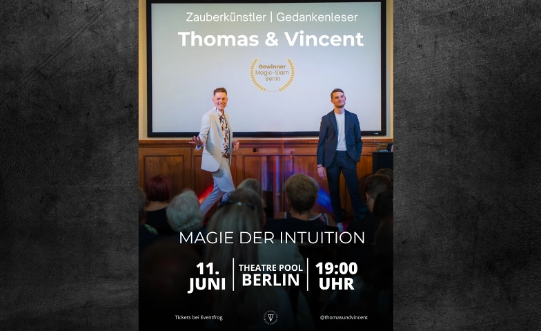 Einst vom Berliner Publikum zum besten Act des Abends gewählt, sind die preisgekrönten Künstler Thomas Majka und Vincent Frommer mit ihrer abendfüllenden Show erstmals in Berlin zu erleben. Sei dabei, wenn Thomas und Vincent in ihrem aktuellen Programm „Magie der Intuition“ mit Humor, Charme und verblüffenden Experimenten zeigen, wie Intuition, Menschenkenntnis und Wahrnehmung scheinbar Unmögliches möglich machen. Nach mehr als 10 Jahren Bühnenerfahrung und über hundert gemeinsamen Auftritten deutschlandweit bringen die beiden Künstler spannende Einblicke in Wahrnehmung und zwischenmenschliche Kommunikation auf die Bühne. Das Publikum wird dabei schnell zum eigentlichen Star des Abends – niemand wird vorgeführt, aber garantiert alle überrascht. Ein Abend voller Mitmachen, Mitlachen und Mitstaunen.