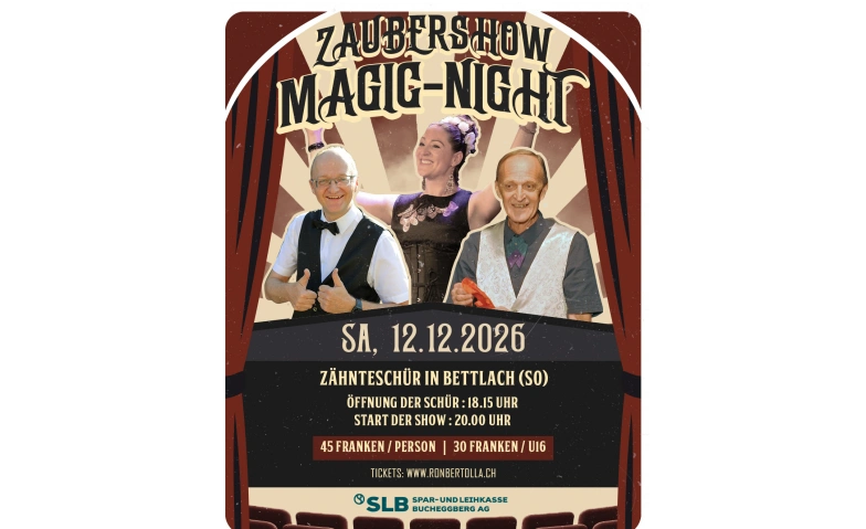 Zaubershow "Magic-Night" - Ausgabe 2026 Zähnteschür, Grenchenstrasse 6, 2544 Bettlach Tickets