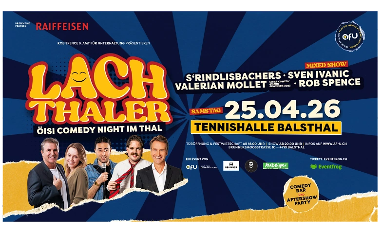 Nach dem grossen Erfolg der ersten Ausgabe geht die Lachthaler Comedynight in die zweite Runde. Am Samstag, 25. April 2026, verwandelt sich die Tennishalle Balsthal erneut in das Comedy-Zentrum des Thals. Unter dem Motto „Öisi Comedy Night im Thal“ erwartet das Publikum ein hochkarätiger Abend voller Humor, Kulinarik und ausgelassener Stimmung.