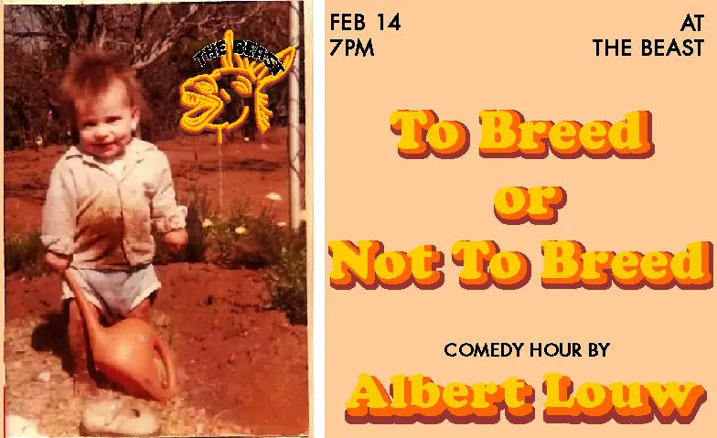 Join me comedian Albert Louw as I wrestle with this important decision. Dealing with everything from growing up in Johannesburg, South Africa, to pretending to be an adult. With my eccentric humor and quirky perspective I will make you laugh. I know it is not going to be your most romantic Valentines date but it will be honest and fun.